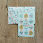 Glissée dans une enveloppe décor oeufs pastels + un écusson dentelé imprimé oeufs recouvert d'un rond oeufs de Pâques..