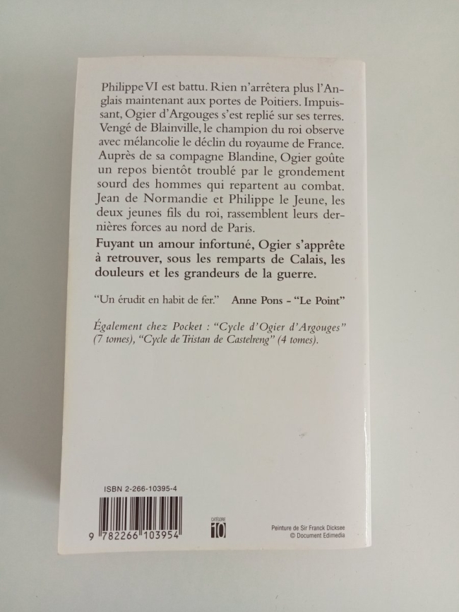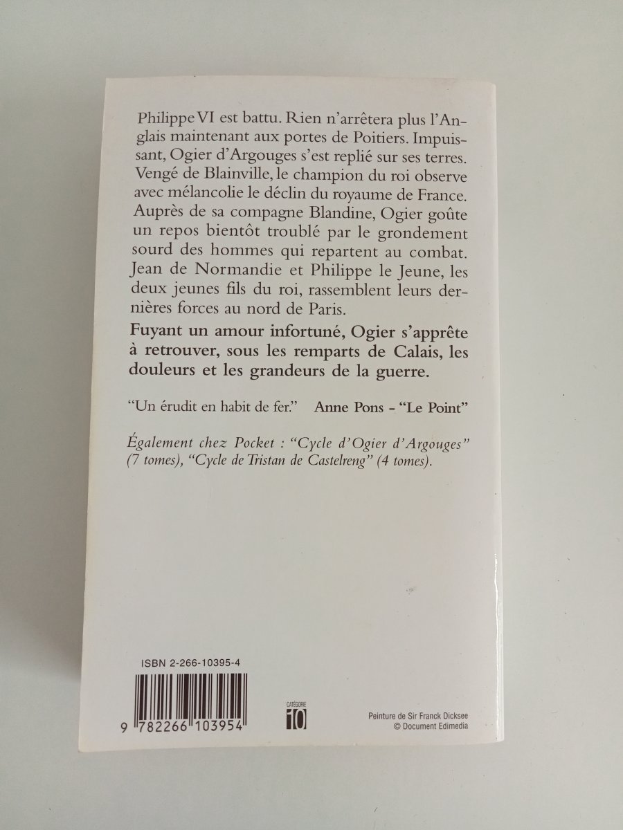 Résumé : Philippe VI est battu. Rien n'arrêtera plus l'Anglais maintenant aux portes de Poitiers. Impuissant, Ogier d'Argouges s'est replié sur ses terres. Vengé de Blainville, le champion du roi observe avec mélancolie le déclin du royaume de France. Auprès de sa compagne Blandine, Ogier goûte le repos bientôt troublé par le grondement sourd des hommes qui repartent au combat. Jean de Normandie et Philippe le Jeune, les deux jeunes fils du roi, rassemblent leurs dernières forces au nord de Paris.