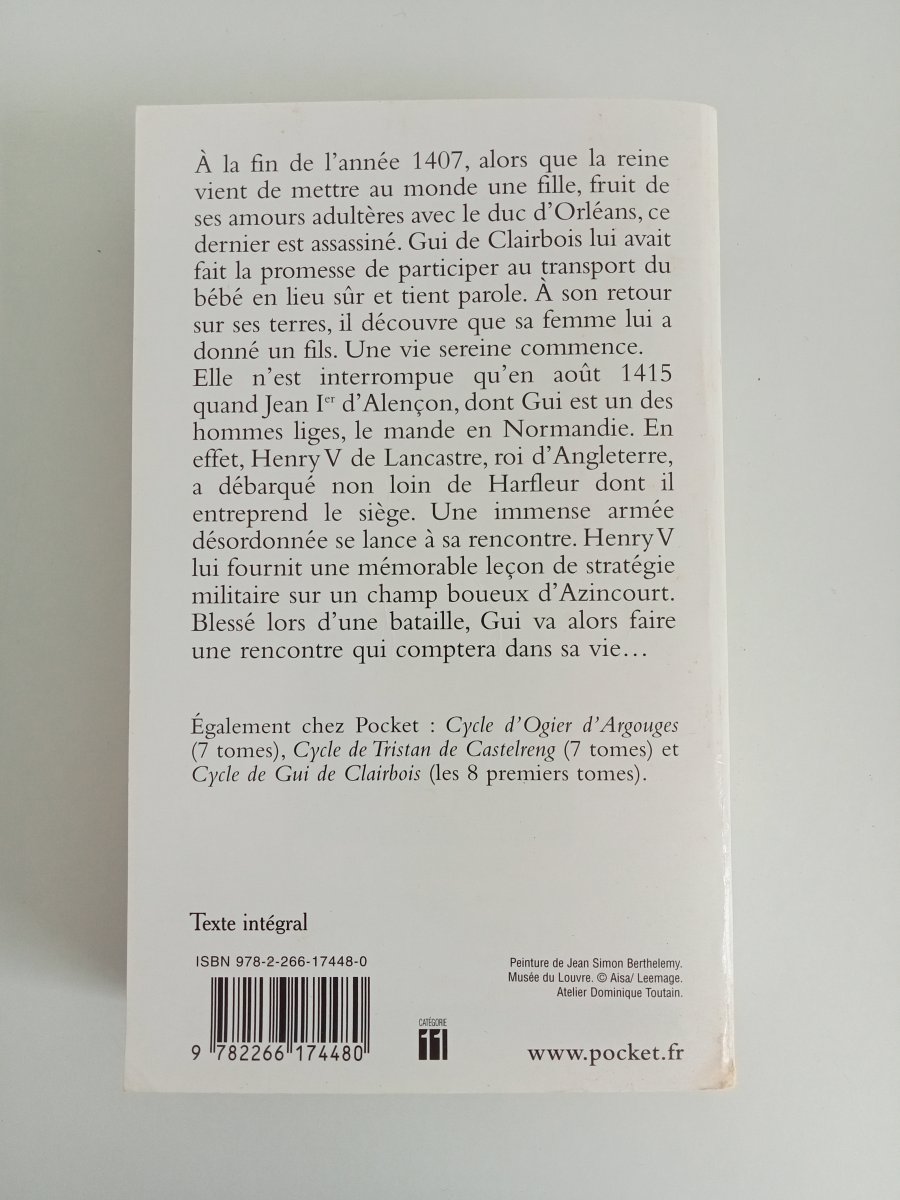 Elle n'est interrompue qu'en août 1415 quand Jean 1er d'Alençon, dont Gui est un des hommes liges, le mande en Normandie. En effet, Henry V de Lancastre, roi d'Angleterre, a débarqué non loin de Harfleur dont il entreprend le siège. Une immense armée désordonnée se lance à sa rencontre. Henry V lui fournit une mémorable leçon de stratégie militaire sur un champ boueux d'Azincourt. Blessé lors d'une bataille, Gui va alors faire une rencontre qui comptera dans sa vie...