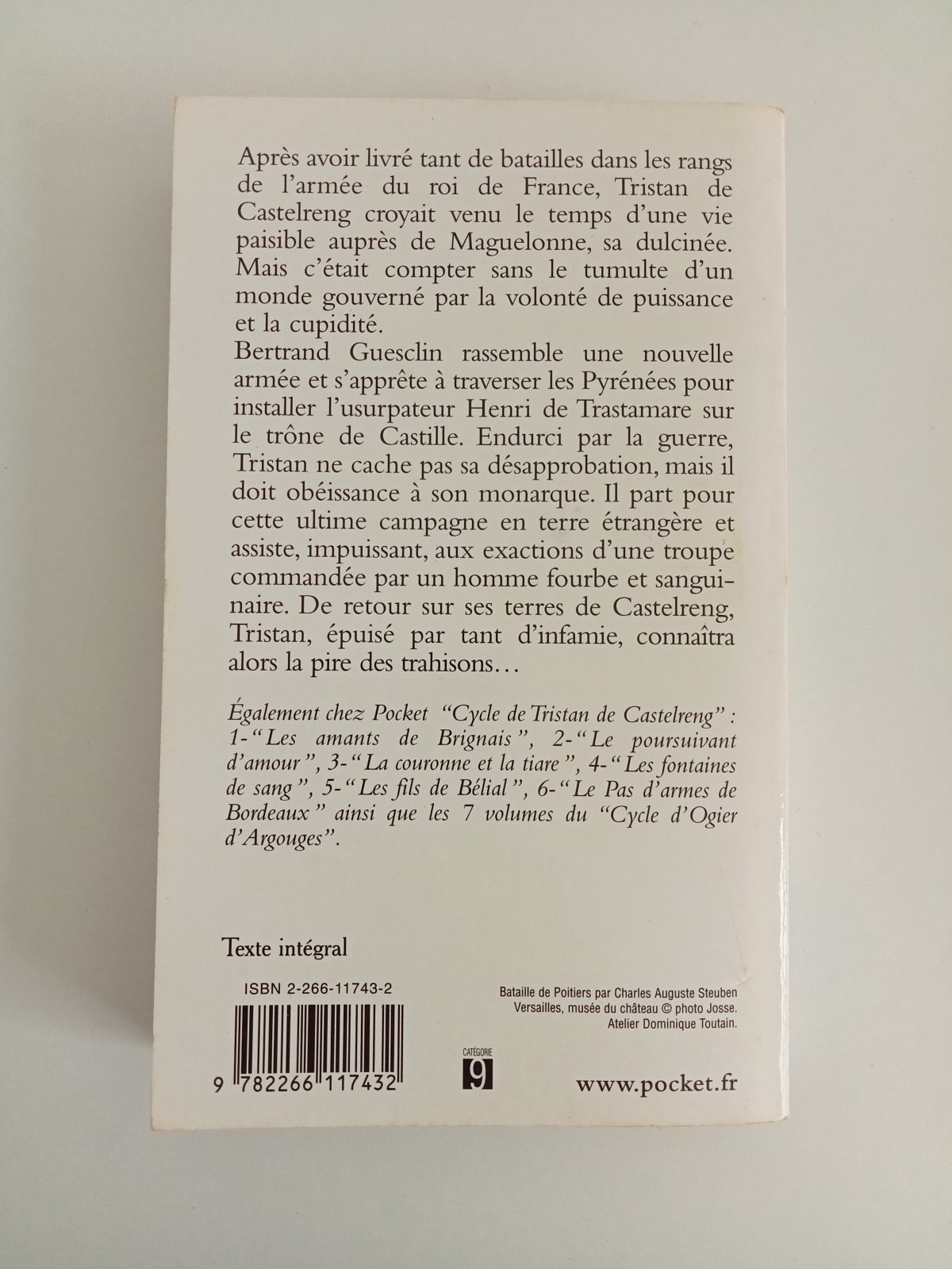 Bertrand du Guesclin rassemble une nouvelle armée et s'apprête à traverser les Pyrénées pour installer l'usurpateur Henri de Trastamare sur le trône de Castille. Endurci par la guerre, Tristan ne cache pas sa désapprobation, mais il doit obéissance à son monarque. Il part pour cet ultime campagne en terre étrangère et assiste, impuissant, aux exactions d'une troupe commandée pa un homme fourbe et sanguinaire. De retour sur ses terres de Castereng, Tristan épuisé par tant d'infâmie, connaîtra alors la pire des trahisons...