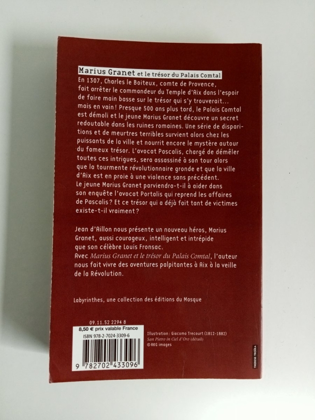 Avec "Marius Granet et le trésor du Palais Comtal", l'auteur nous fait vivre des aventures palpitantes à Aix à la veille de la Révolution.