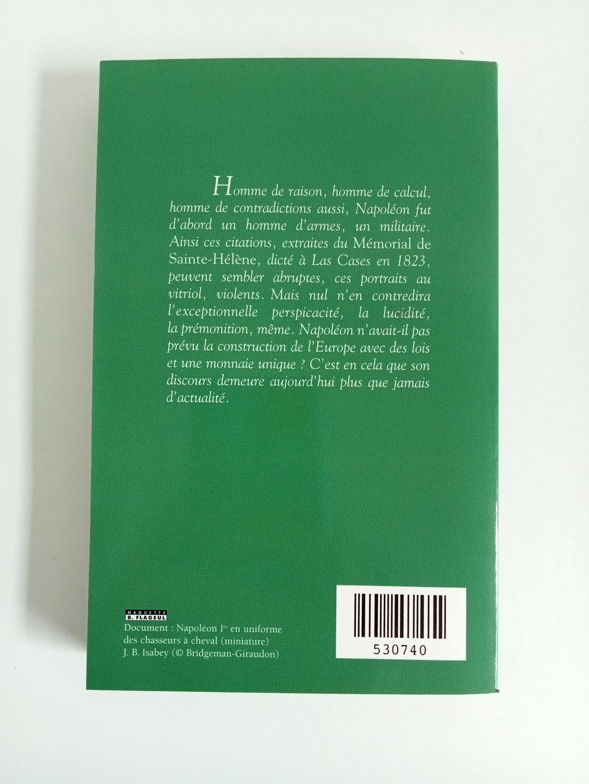 Résumé : Homme de raison, homme de calcul, homme de contradictions aussi, Napoléon fut d'abord un homme d'armes, un militaire. Ainsi ces citations, extraites du Mémorial de Sainte Hélène, dicté à Las Cases en 1823, peuvent sembler abruptes, ces portraits au vitriol, violents. Mais nul n'en contredira l'exceptionnelle perspicacité, la lucidité, la prémonition, même. napoléon n'avait-il pas prévu la construction de l'Europe avec des lois et une monnaie unique ? C'est en cela que son discours demeure aujourd'hui plus que jamais d'actualité.