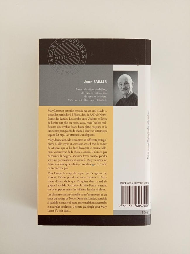 Résumé : Mary Lester est cette fois envoyée par son ami "Ludo" conseiller particulier à l'Elysée, dans la ZAD de Note-Dame des Landes. Les conflits en Zadistes et forces de l'ordre ont plus ou moins cessé, mais l'ombre malfaisante des terribles Black blocs plane toujours et lutte entre pratiquants de chasse à courre et extrémistes végans fait rage. Les attaques se multiplient.