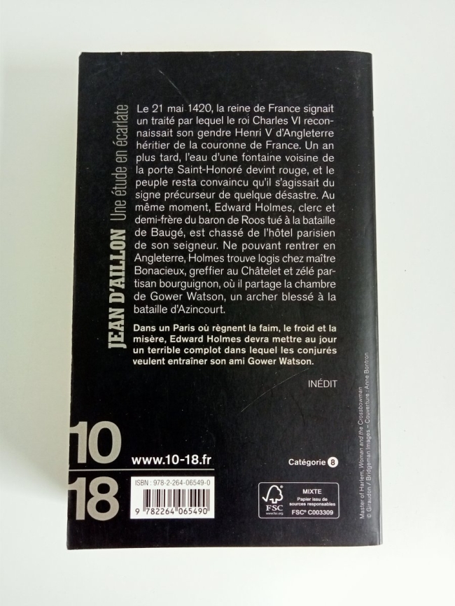 Résumé : Le 21 mai 1420, la reine de France signait un traité par lequel le roi Charles VI reconnaissait son genre Henri V d'Angleterre héritier de la couronne de France. Un an plus tard, l'eau d'une fontaine voisine de la porte Saint-Honoré devint rouge, et le peuple resta convaincu qu'il s'agissait du signe précurseur de quelque désastre. Au même moment, Edward Holmes, clerc et demi-frère du baron de Roos, tué à la bataille de Baugé, est chassé de l'hôtel parisien de son seigneur. Ne pouvant rentrer en Angleterre, Holmes trouve logis chez maître Bonacieux, greffier au Châtelet et zélé partisan bourguignon, où il partage la chambre de Gower Watson, un archer blessé à la bataille d'Azincourt.